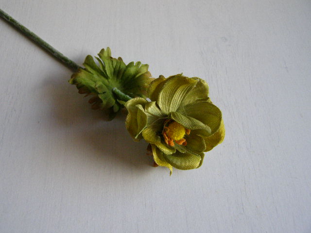 Anemonka s listy. materiál : látka.