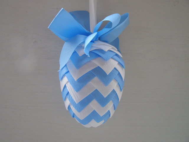 Uvnitř se skrývá polystyrénové vejce, stuhy jsou taftové.
