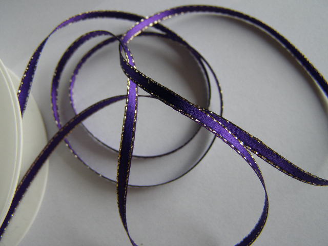 atlasová stuha 3 mm - balení 20 m - fialová se zlatemskladem 4 balení90 Kč/ balení