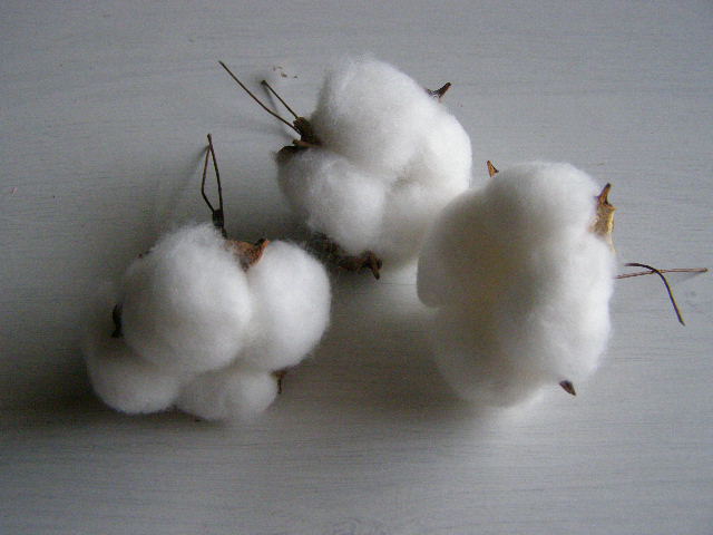 Plod bavlníku z přírodního a umělého materiálu o velikosti cca 6 - 7 cm.