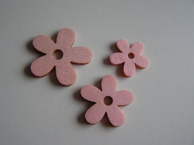 dřevěné kytičky pětičetné - 3 ks různé - růžovéskladem 5 balení12 Kč/ balení