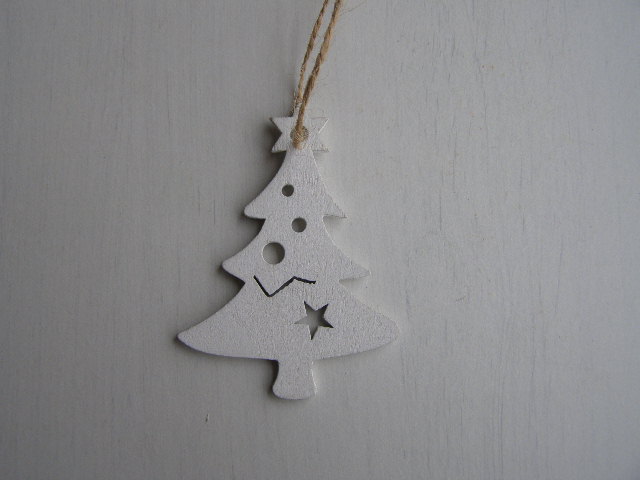 Bílý dřevěný stromek na pověšení 7 x 5 cm.