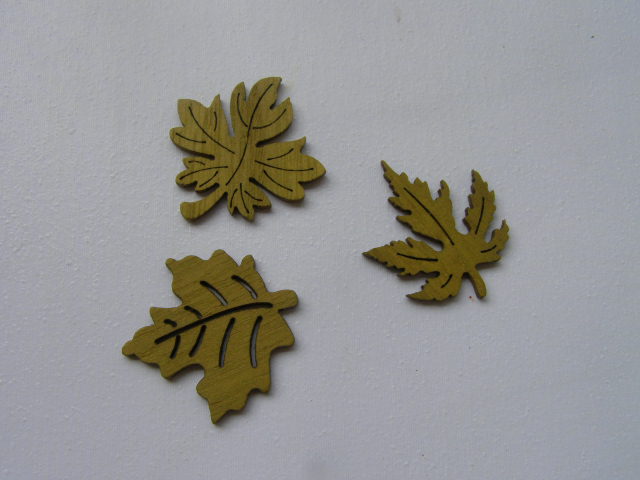 dřevo - javorové listy zelené - 3 ksskladem 19 balení14 Kč/ balení
