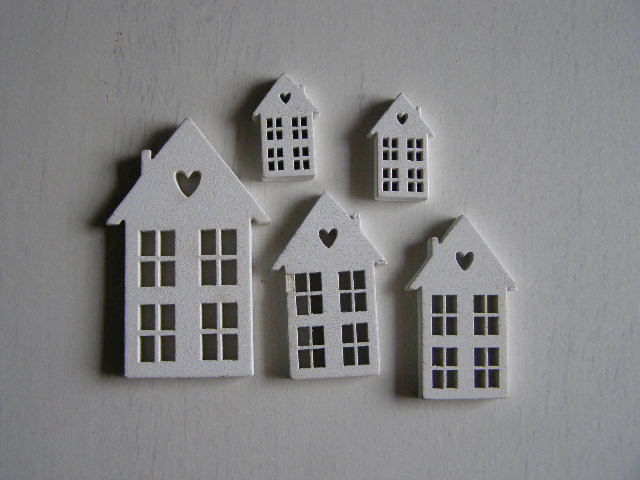 dřevo sada - domky - špičatá střecha - bílá 1+2+2skladem 9 balení33 Kč/ balení