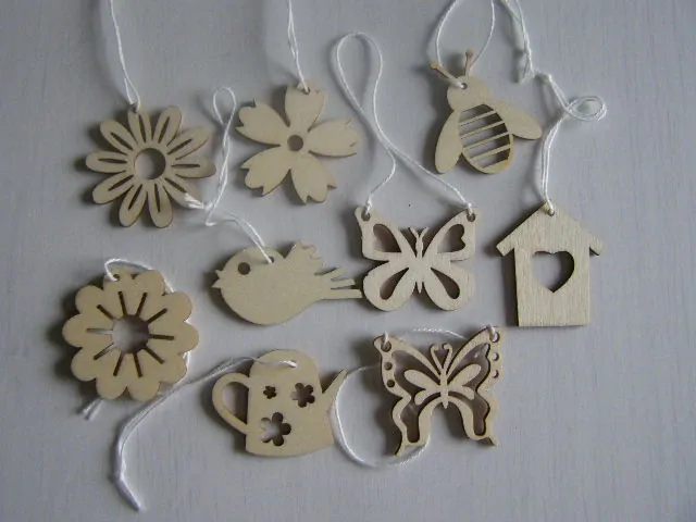 dřevo sada - jarní přírodní ozdobičky 9 ksskladem 16 balení65 Kč/ balení