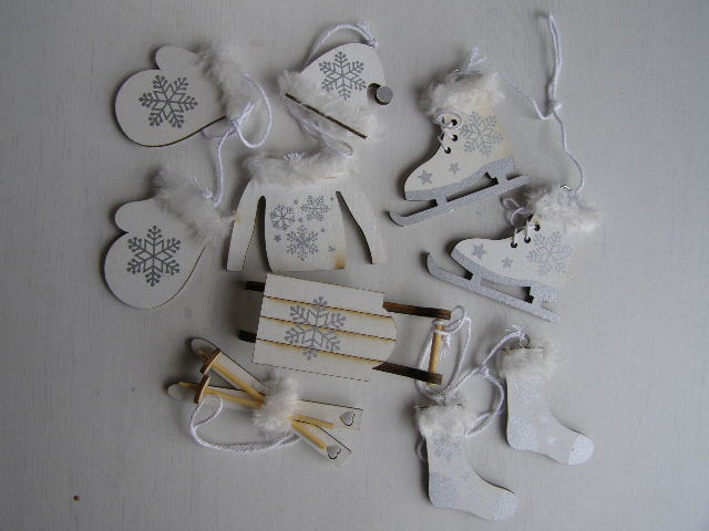 dřevo sada - zimní oblečení, lyže, sáně, brusle - bíléposlední 1 balení155 Kč/ balení