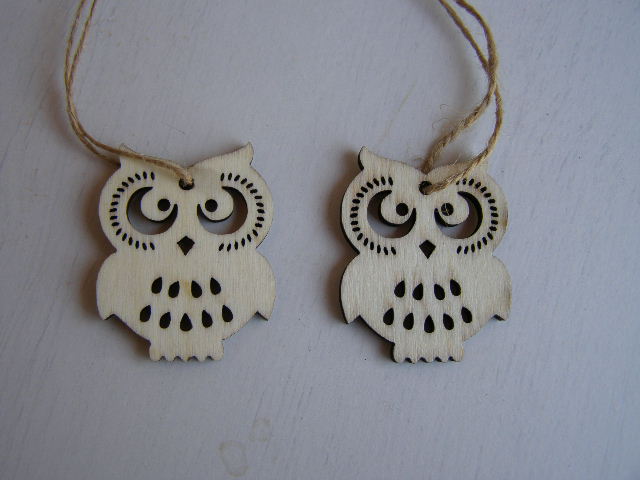 dřevo - sova na pověšení - zepředu přírodní 2 ksskladem 9 balení18 Kč/ balení