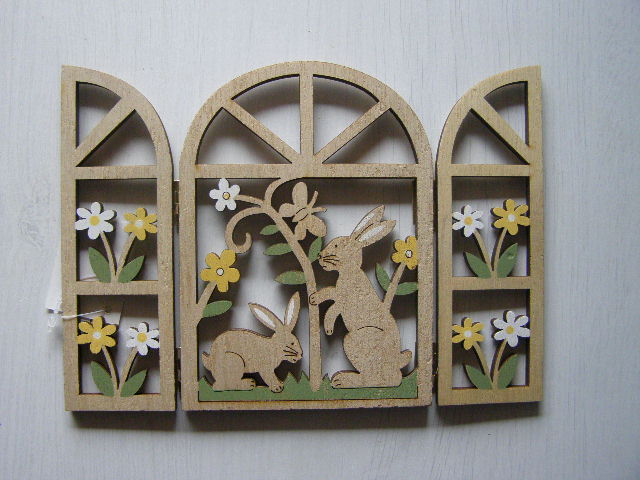 dřevo závěs - jarní otevírací okénko se zajícemskladem 3 ks75 Kč/ ks