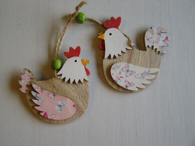 dřevo závěs - kohout a slepice 8 cmskladem 5 balení70 Kč/ balení