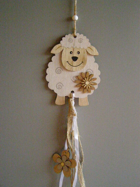 dřevo závěs - ovečka s korálky a kytičkamiskladem 4 ks149 Kč/ ks
