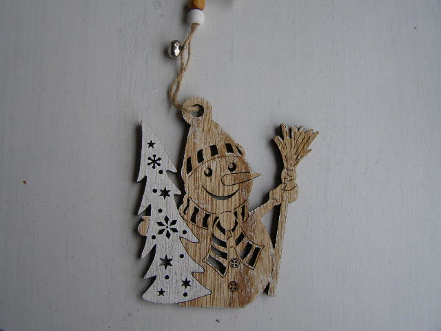 dřevo závěs s rolničkou - sněhulák s koštětem a stromkemskladem 6 ks48 Kč/ ks