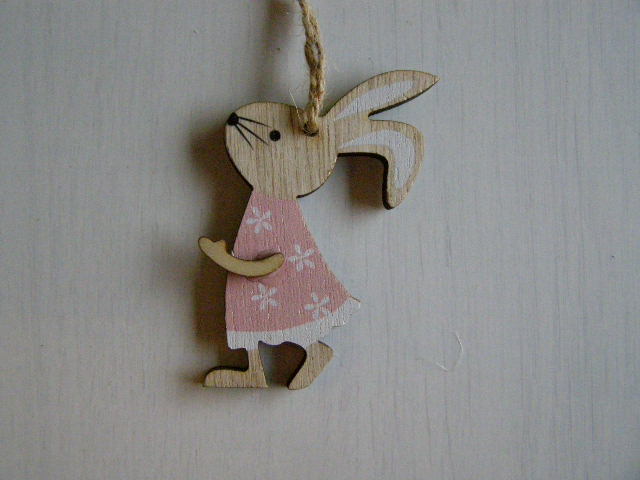 dřevo závěs - zaječice s růžových šatičkáchskladem 10 ks38 Kč/ ks