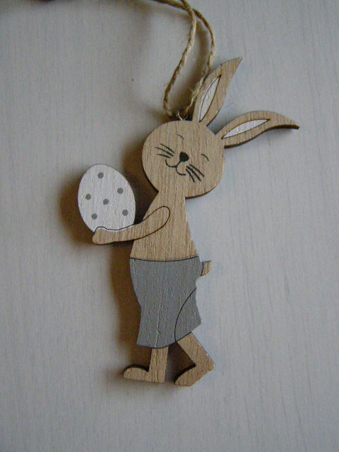 dřevo závěs - zajíc v šedých kalhotáchskladem 5 ks40 Kč/ ks