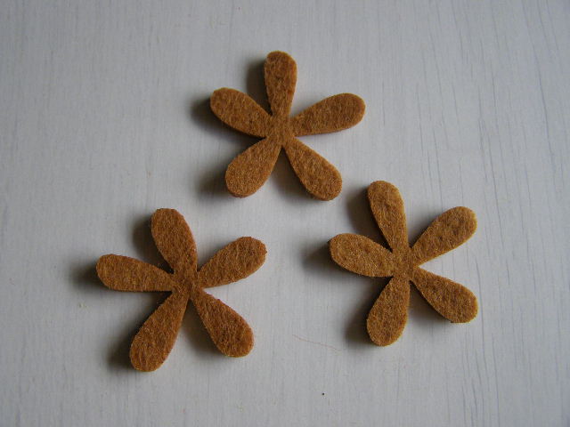 filcová kytička - velká hnědá 3 ksskladem 7 balení12 Kč/ balení