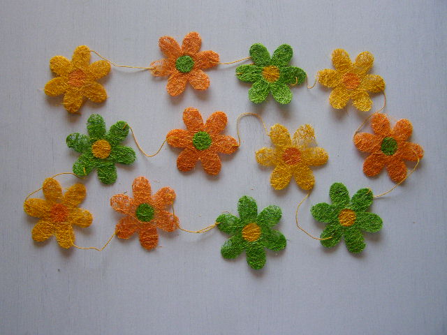 Girlanda se sisalovými kytičkami o velikosti 7 cm.