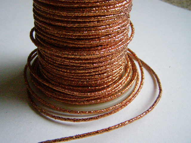 Gympa silná třpytivá. Kulatý drát, omotaný nitkou. Tloušťka cca 2 mm.