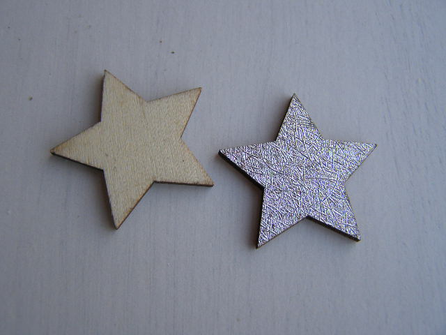 hvězda dřevo + metal - stříbro 2 ksskladem 21 balení7 Kč/ balení