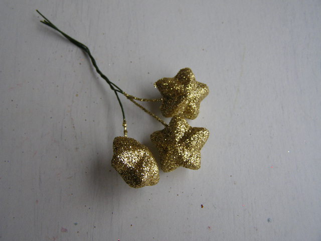 hvězda malá na drátku - 3 ks baculatá - glitr zlatáskladem 15 sv9 Kč/ sv