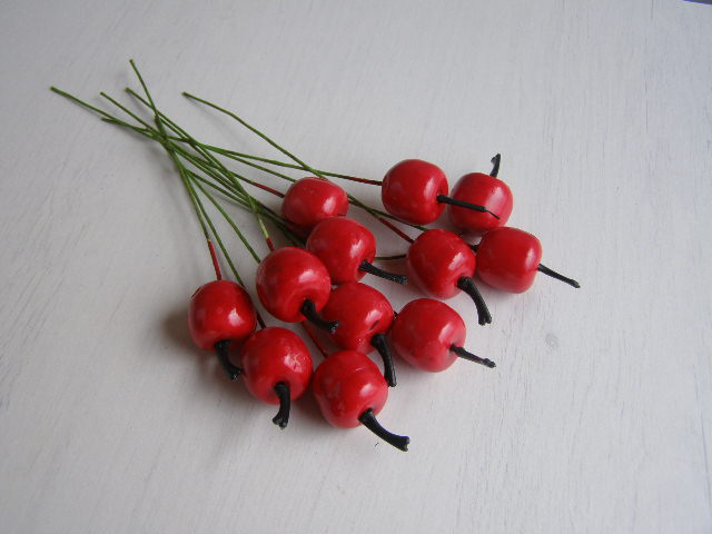 Malá umělá jablíčka na drátku.