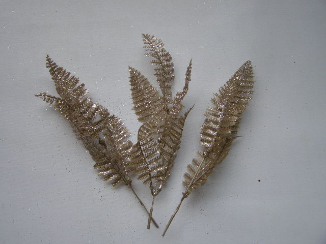- kapradí - 3 ks - šampaň se třpytem