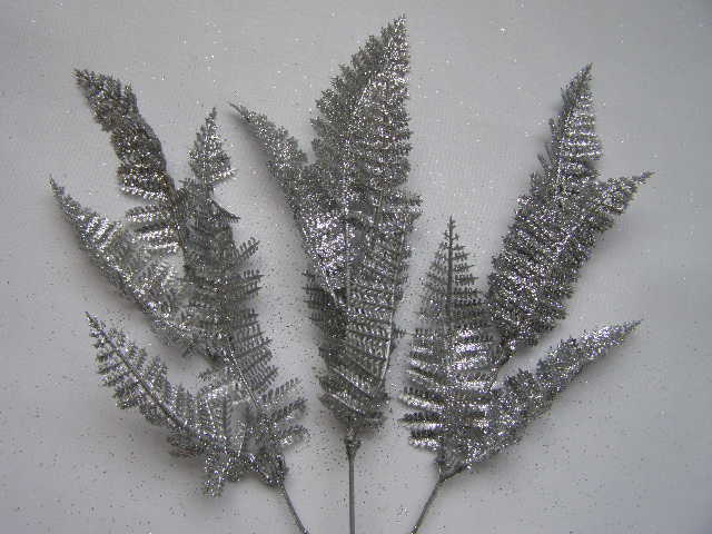 - kapradí - 3 ks - stříbrná se třpytem
