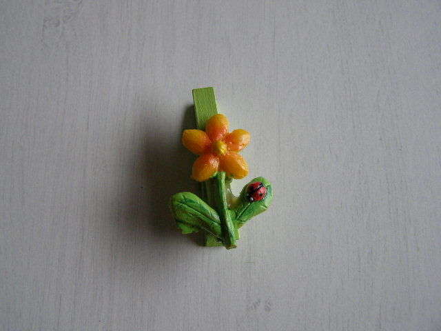 - kolíček - plastová kytička s beruškou- oranžovožlutá