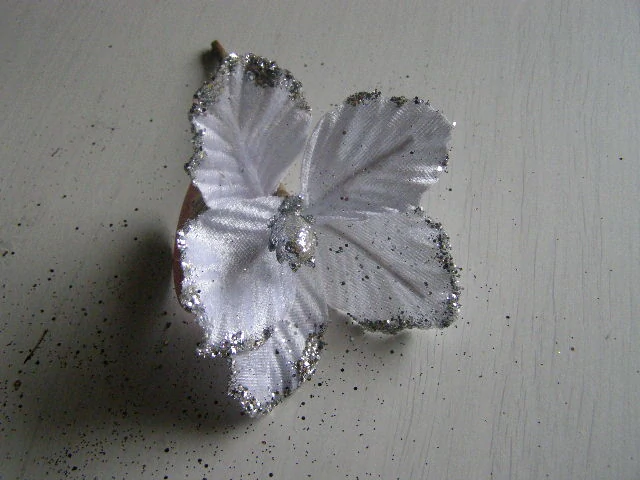 květ magnólie samet menší - bílá se třpytemskladem 12 ks40 Kč/ ks