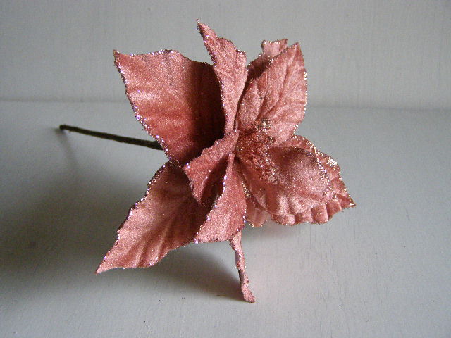 květ vánoční hvězdy - starorůžová sametová se třpytemskladem 6 ks45 Kč/ ks