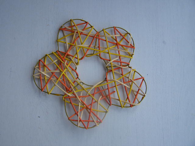 Plochá pedigová vyplétaná kytka. Základ tvoří drát.