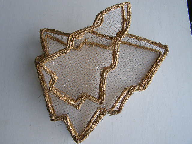 Drátěná nízká miska ve tvaru stromečku ve zlaté barvě.
