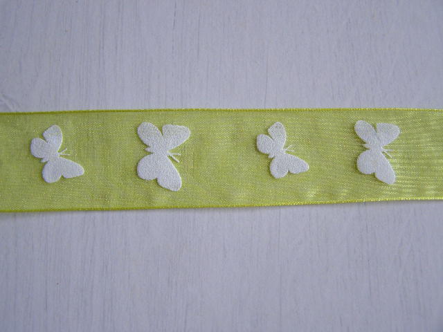 Monofilová stuha s plastickými motýly, šíře 25 mm.