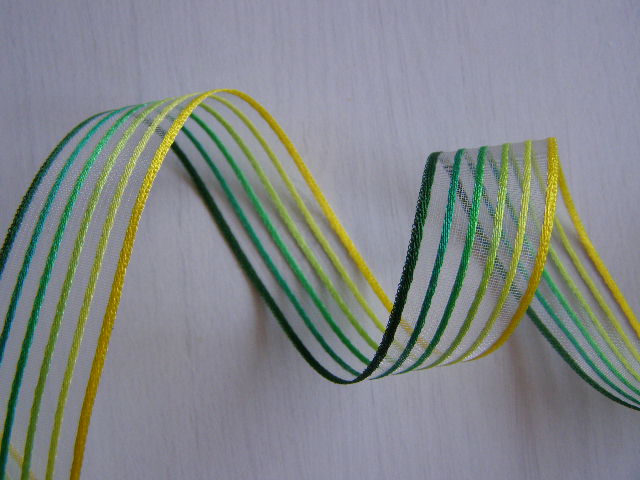 monofilová s atlasovými pruhy - 25 mm - zelenožlutá