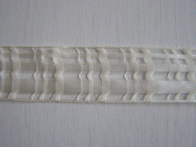 Monofilová stuha - kostka. Okraj zpevněn vlascem.