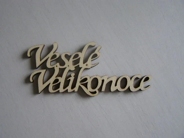 Vyřezaný nápis Veselé Velikonoce.