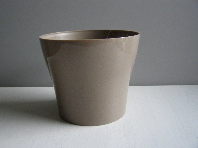 Plastový obal na květináč. Výška 11 cm, dolní průměr 9 cm, horní průměr 12,5 cm.
