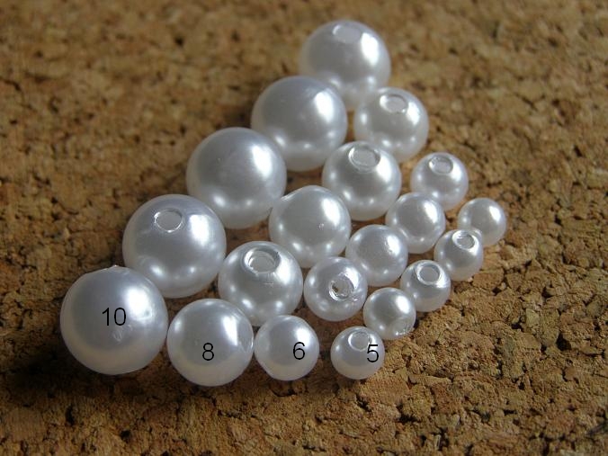 Perličky kulaté bílé umělé. Průměr 10 mm. Použití : do vazeb, na svatby, na přízdoby.