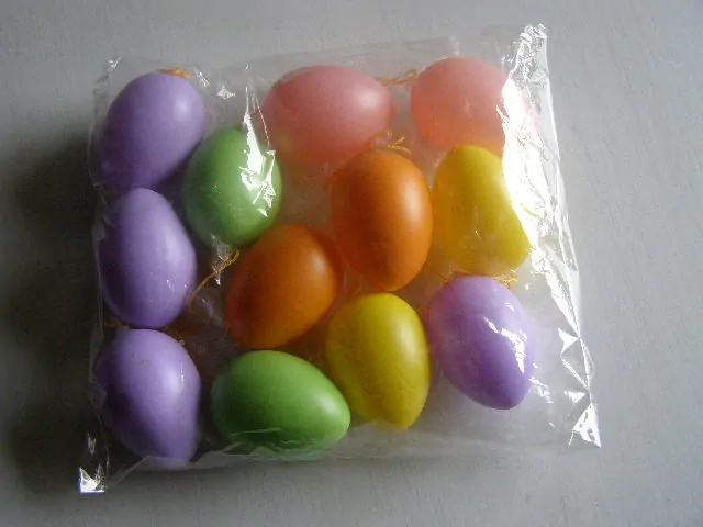 Plastová vajíčka o velikosti 6 cm. S poutkem na pověšení.