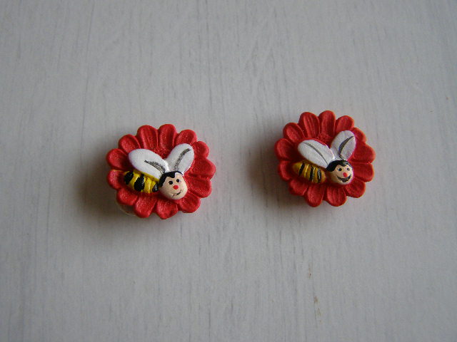 polystone - včelka na červeném květu s lepítkem -2 ksskladem 6 balení15 Kč/ balení
