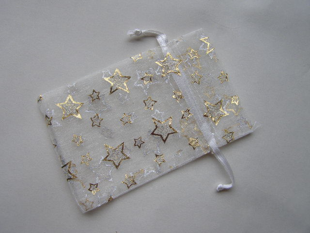 sáček zatahovací - bílý monofil se zlatými hvězdami 7 x 11 cmskladem 17 ks10 Kč/ ks