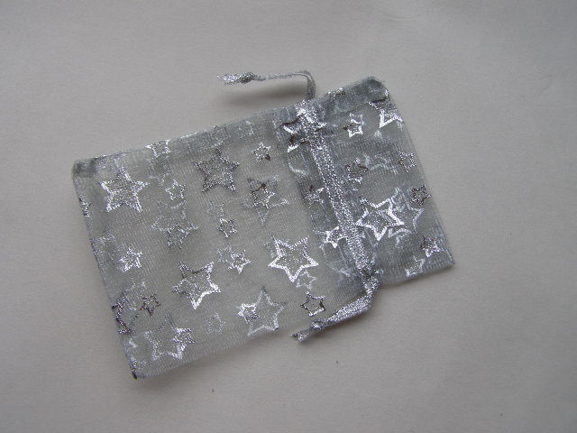 sáček zatahovací - stříbrný monofil se stříbrnými hvězdami 7 x 11 cmskladem 8 ks10 Kč/ ks