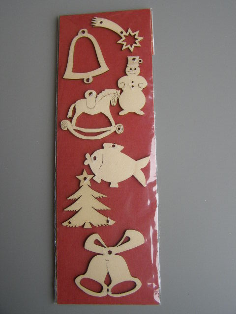 Sada dřevěných vánočních ozdobiček.