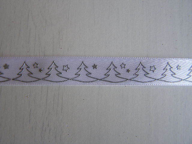 saténová 15 mm - stromečky - bílá se stříbremskladem 40 m12 Kč/ m