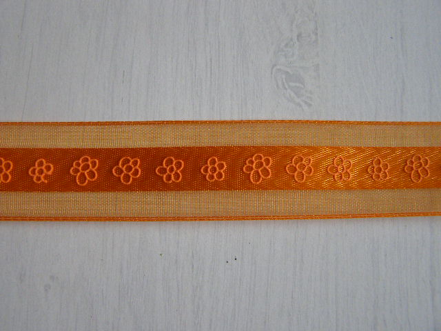 - saténová s monofilem 25 mm - kytičky - oranžová