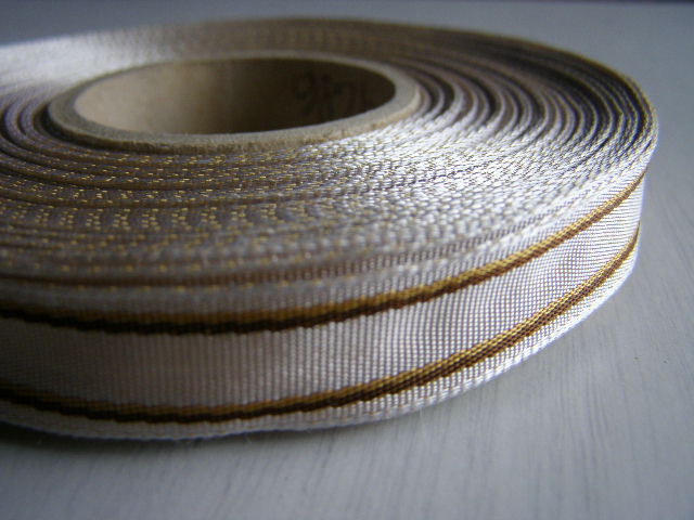 stuha s drátem - 15 mm - béžová s hnědými proužkyskladem 16 m8 Kč/ m