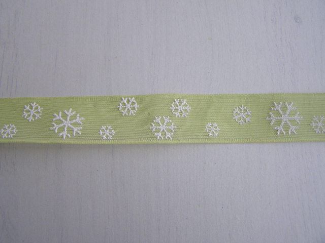 - stuha s drátem - 25 mm - světle zelená - vločky