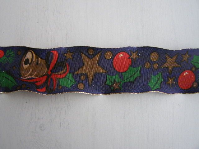 stuha s drátem - 40 mm - vánoční motiv - modráskladem 8 m15 Kč/ m