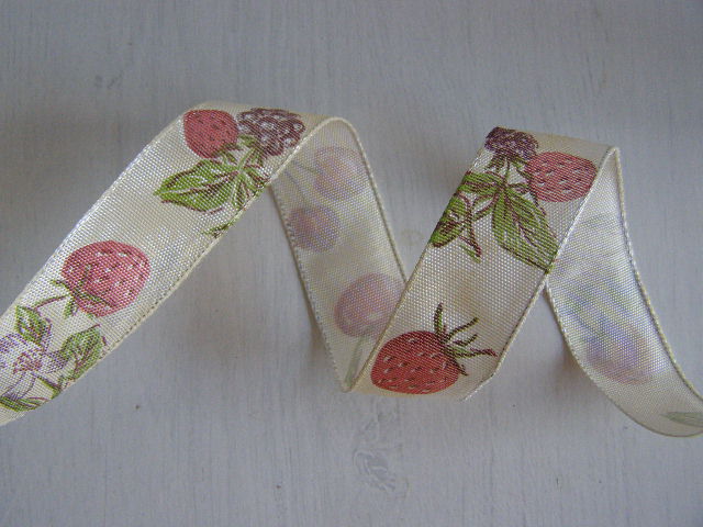 stuha s drátem - potisk ostružiny, jahody, třešněskladem 20 m18 Kč/ m