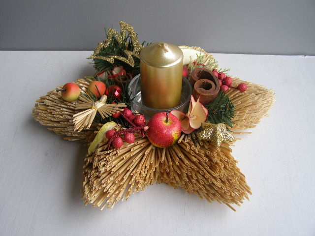 svícen - zdobená slámová hvězda se zlatou svíčkou