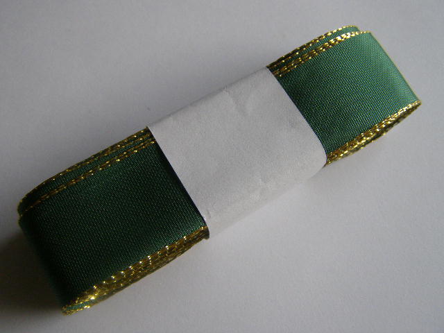 taftová 25 mm - zelená se zlatem - 1 mskladem 13 m7 Kč/ m
