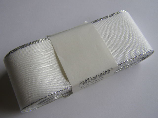 Taftová stuha. Šíře 40 mm. Stříbrný lem.